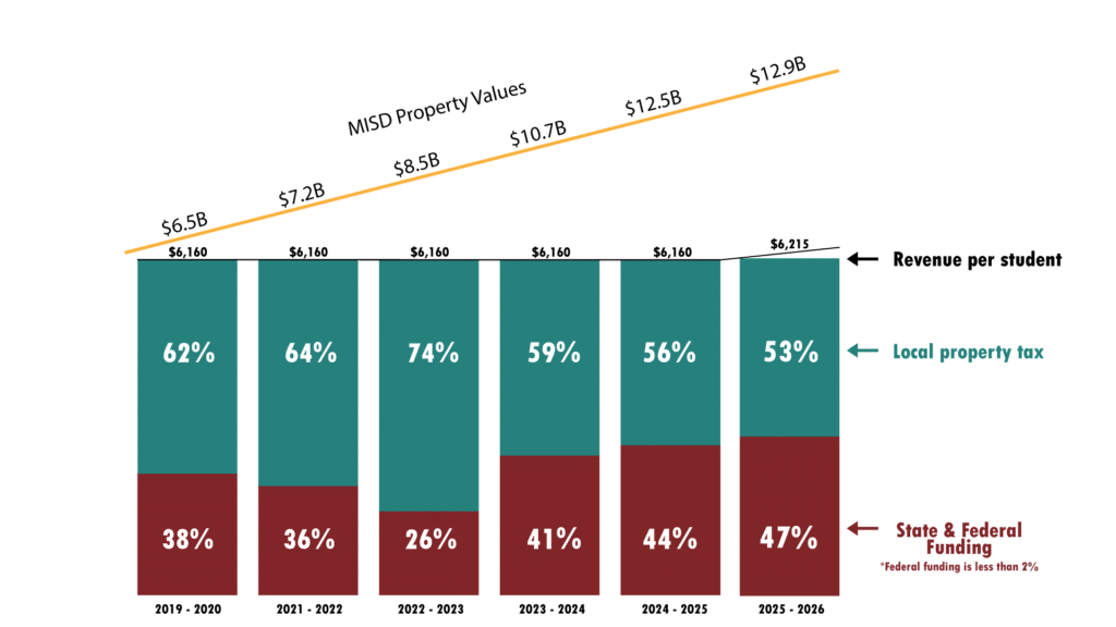 Many taxpayers do not realize that increases in the taxable values of commercial and residential property within the district do not benefit Magnolia ISD. Based on the current school funding laws in Texas, when taxable values increase, state funding decreases.